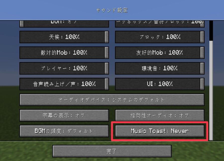 サウンド設定のBGMのトースト表示がミュージックトーストに改名されました。