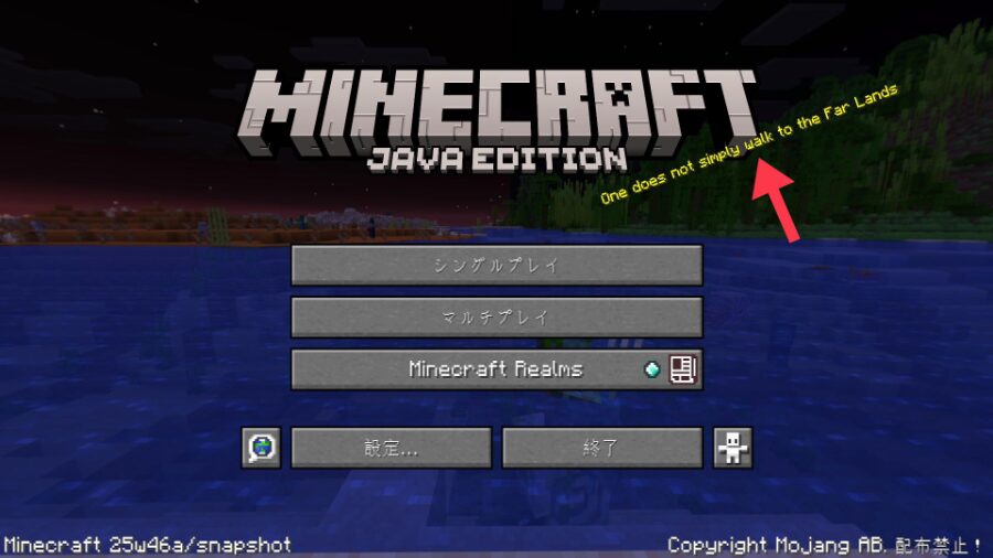 スプラッシュテキスト「One does not simply walk to the Far Lands」が新しく追加されました。