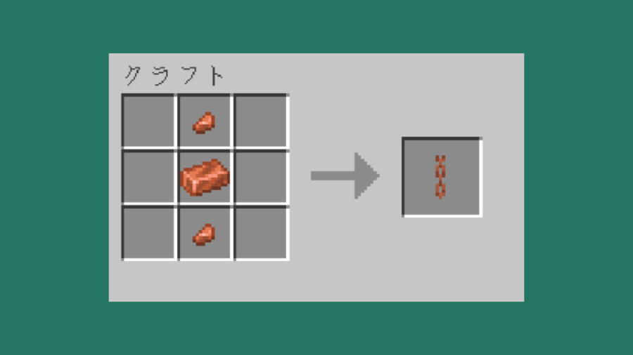 銅インゴット1個・銅塊2個で「銅の鎖」を1個クラフトすることができます。