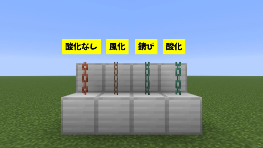 「銅の鎖」は、他の銅系ブロックと同様に酸化します。
