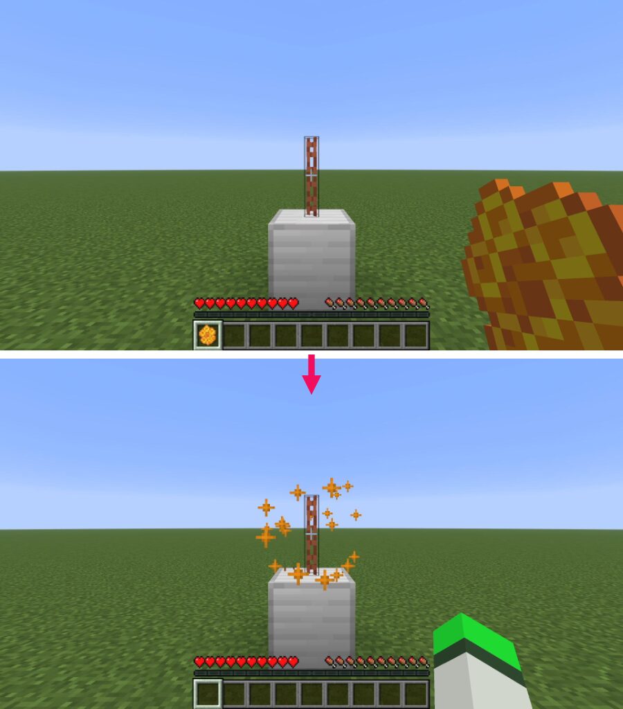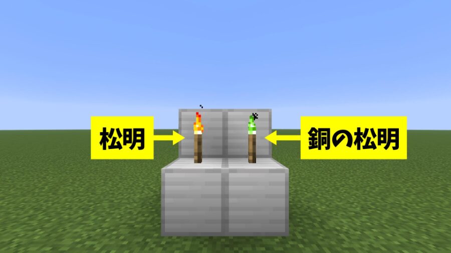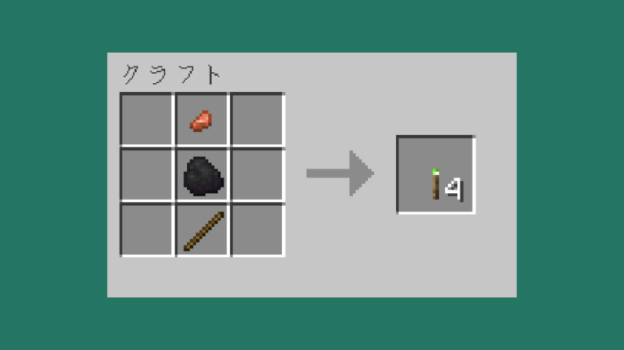 銅塊1個・石炭(または木炭)1個・棒1個で「銅の松明」を4個クラフトすることができます。