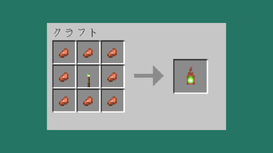 銅塊8個・銅の松明1個で「銅のランタン」を1個クラフトすることができます。