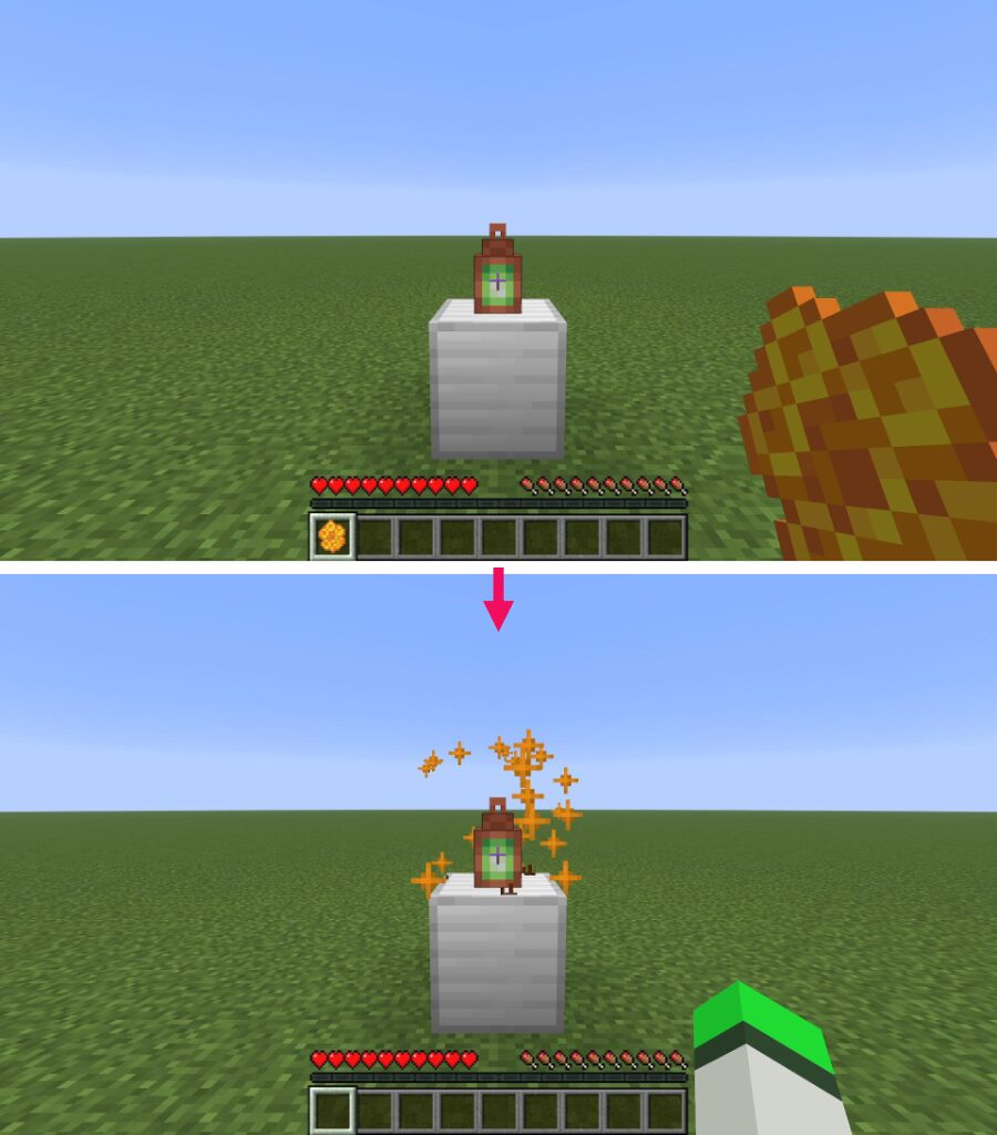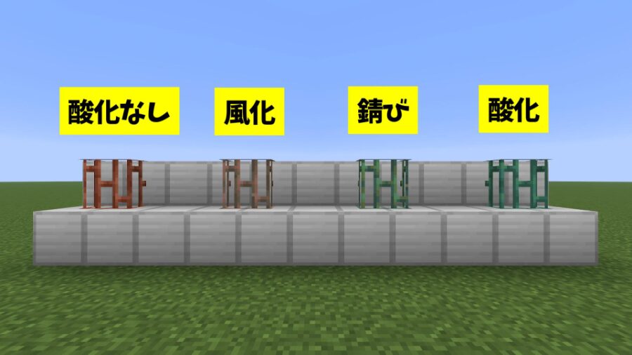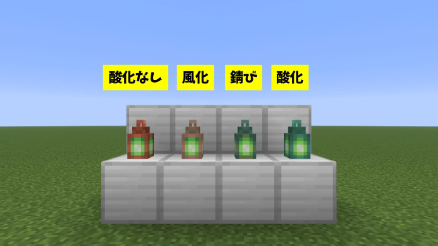 「銅のランタン」は、他の銅系ブロックと同様に酸化します。