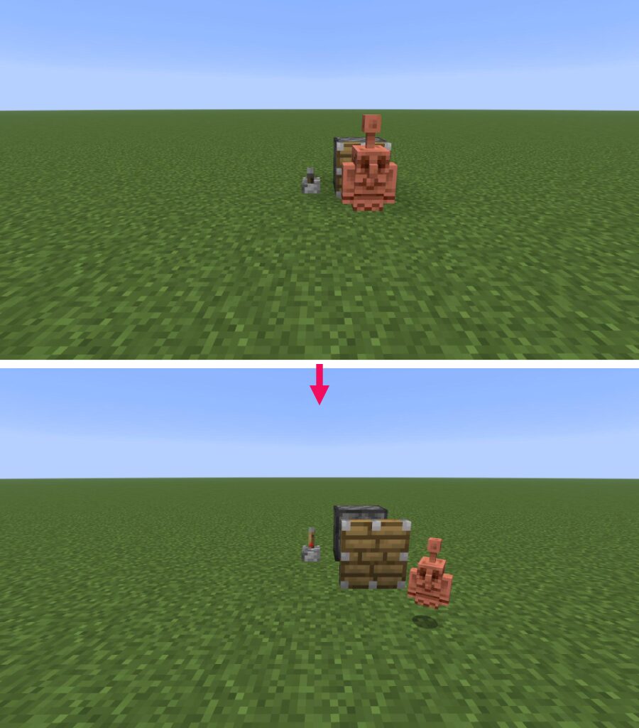 全種類の銅ゴーレム像がピストンで押された際にアイテム化するようになりました。