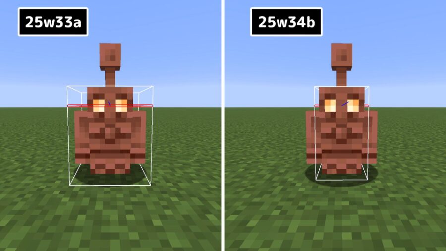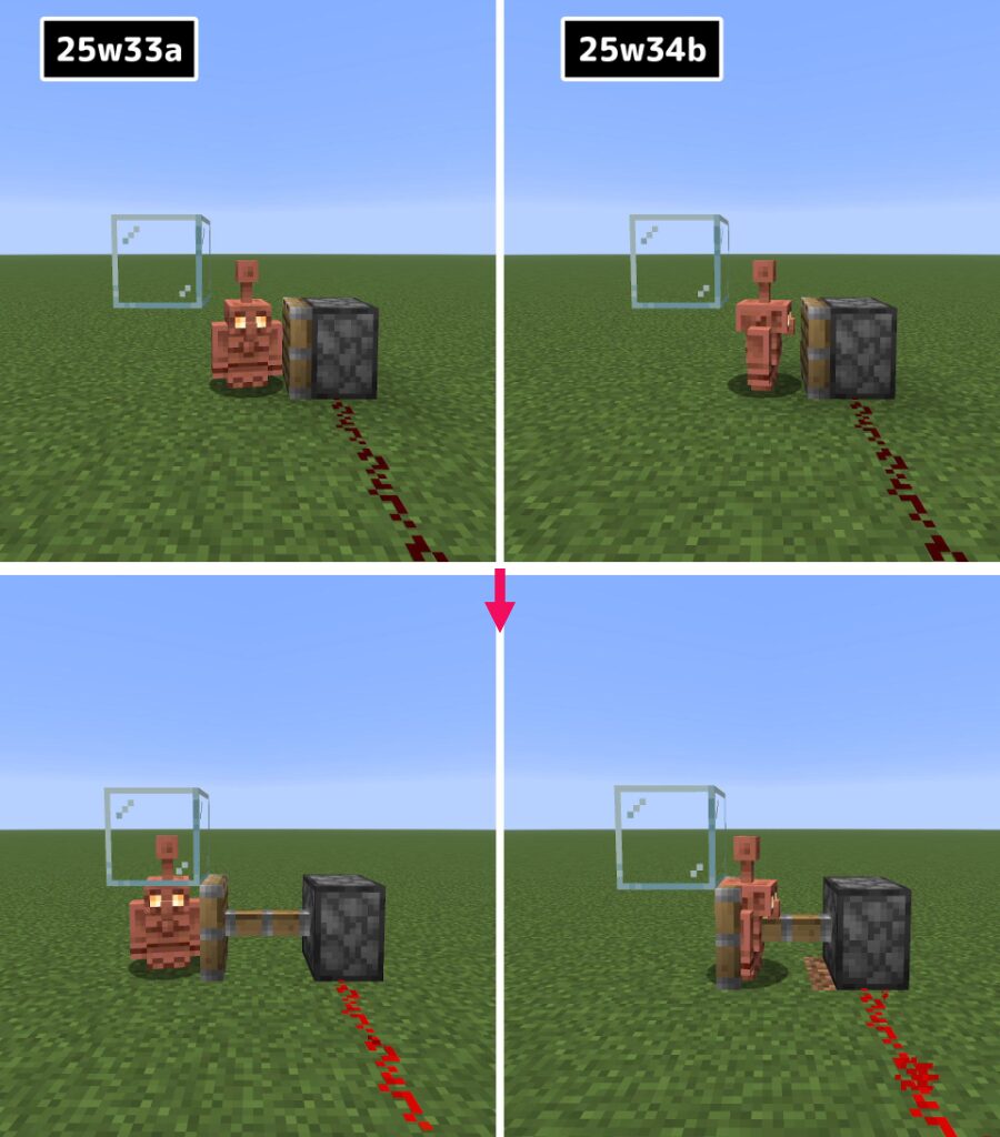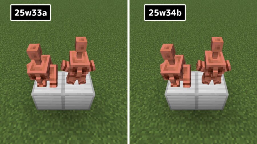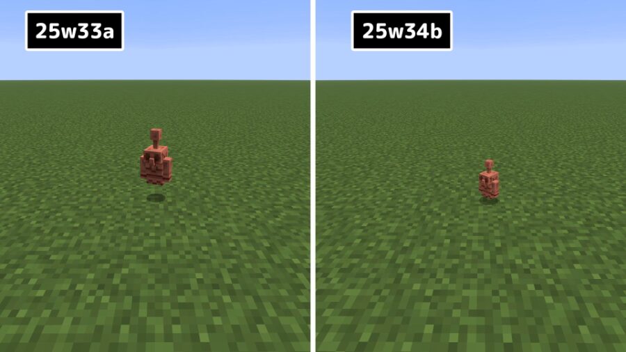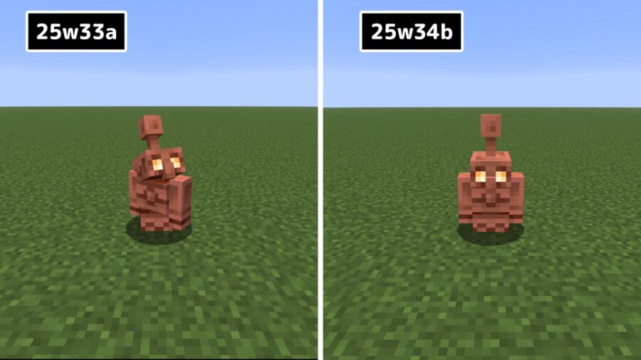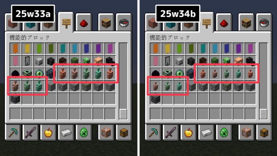 これに伴い、クリエイティブ内での「カッパーゴーレムの像」も適正サイズに修正されています。