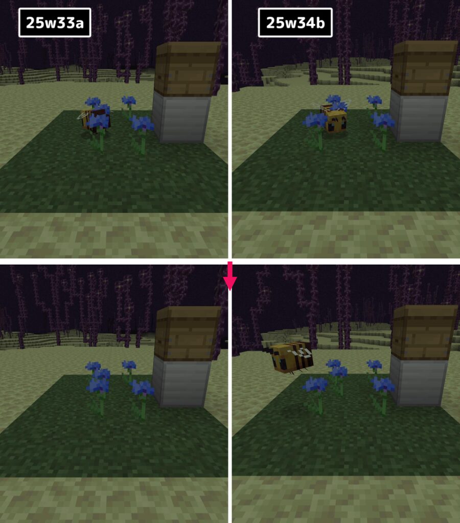 オーバーワールドで雨が降ってもエンドのミツバチが巣に戻らなくなりました。