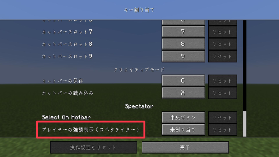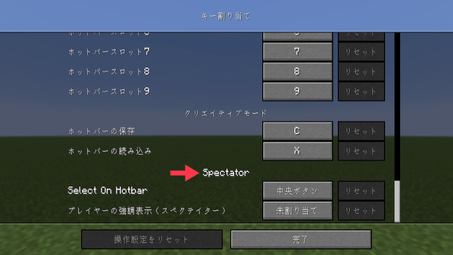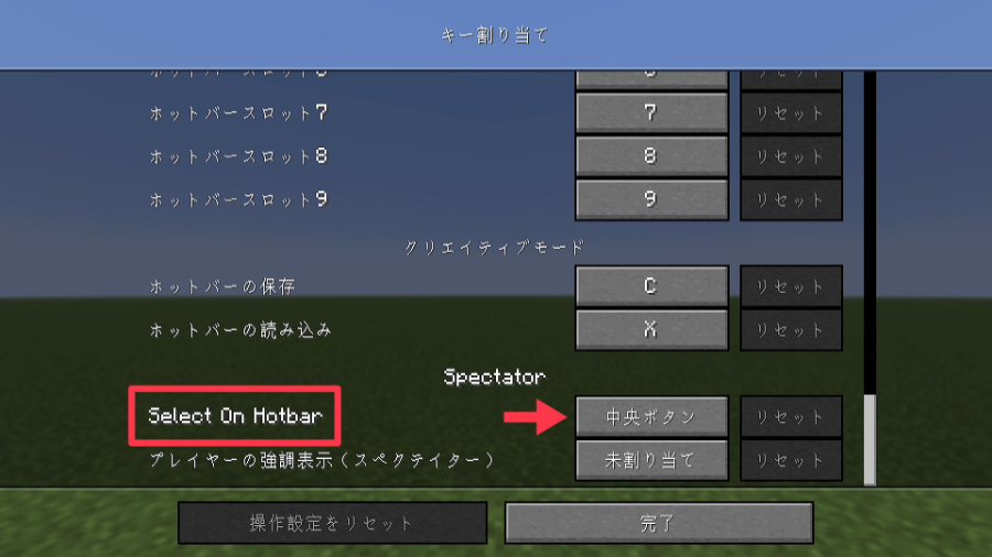 新しく追加されたカテゴリ、スペクテイターに新しい項目「Select On Hotbar」が追加されました。