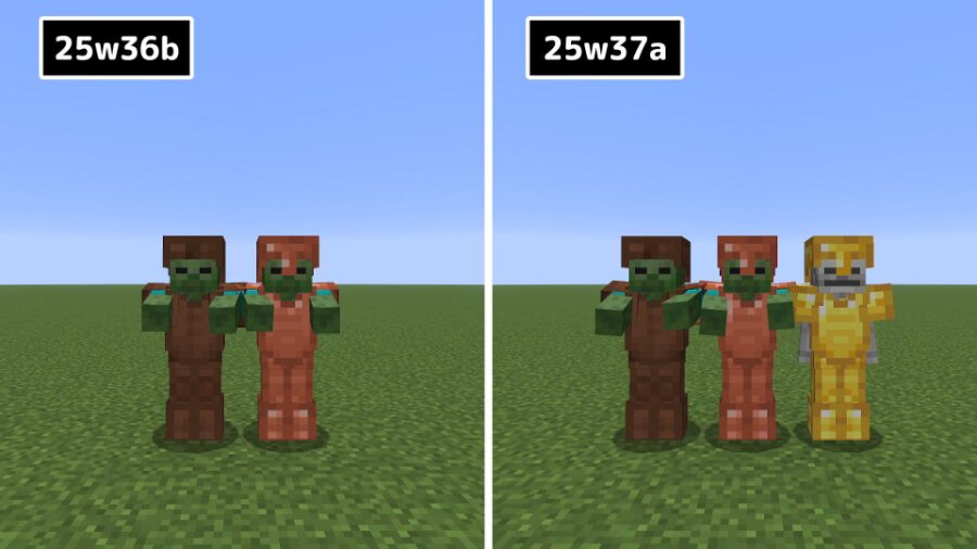 武装ゾンビ・武装スケルトン系のモンスターがスポーンする際に、選択される最初の階級が革・銅の2つから革・銅・金の3つになりました。