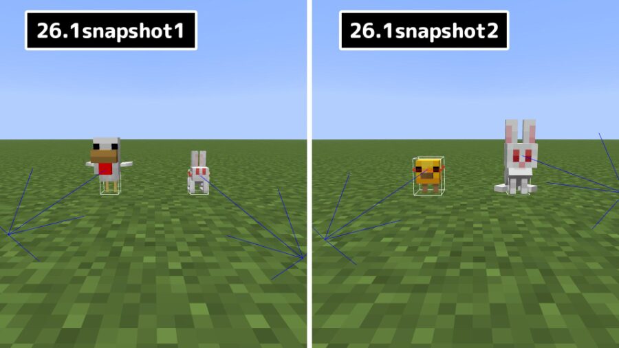 この変更に伴い、ウシ・ヒツジ・ブタ・ネコ・ヤマネコ・ムーシュルーム・ニワトリ・ウサギ・オオカミの大人、子供のアニメーションが変更されました。