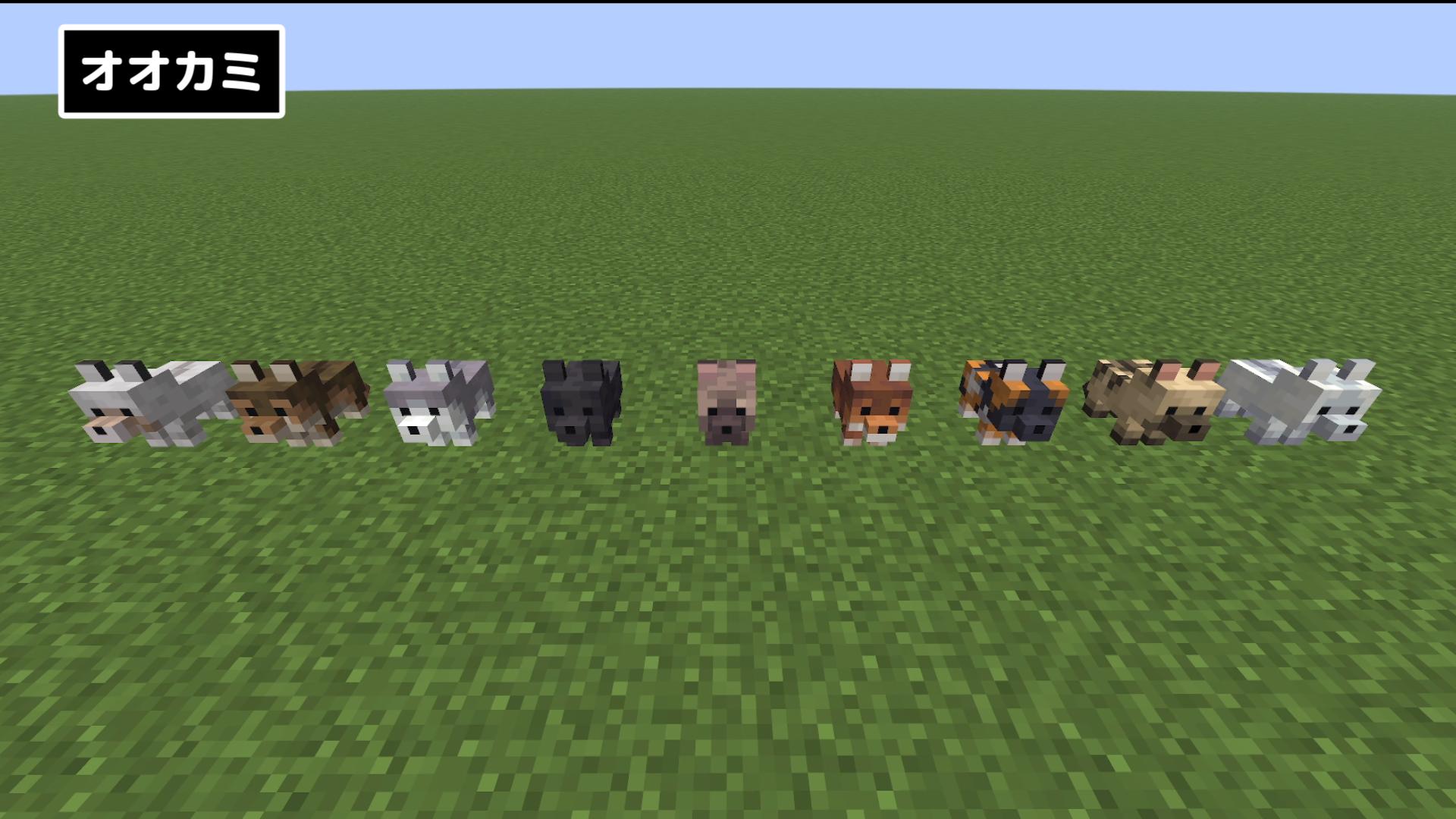 ウシ・ヒツジ・ブタ・ネコ・ヤマネコ・ムーシュルーム・ニワトリ・ウサギ・オオカミの子供のモデル・テクスチャが変更されました。