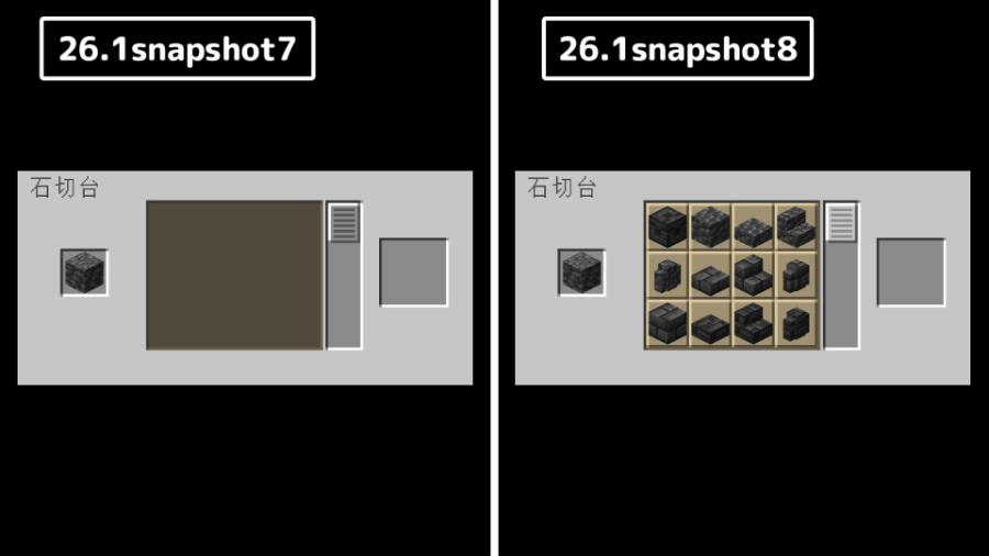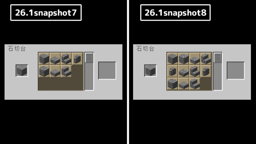 石切台で石を丸石の派生ブロックに直接加工できるようになりました。