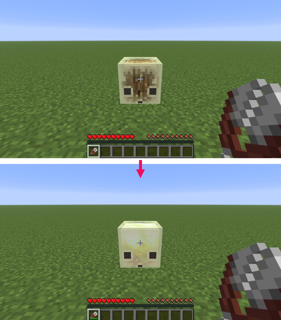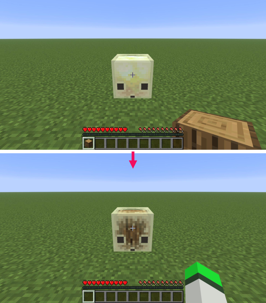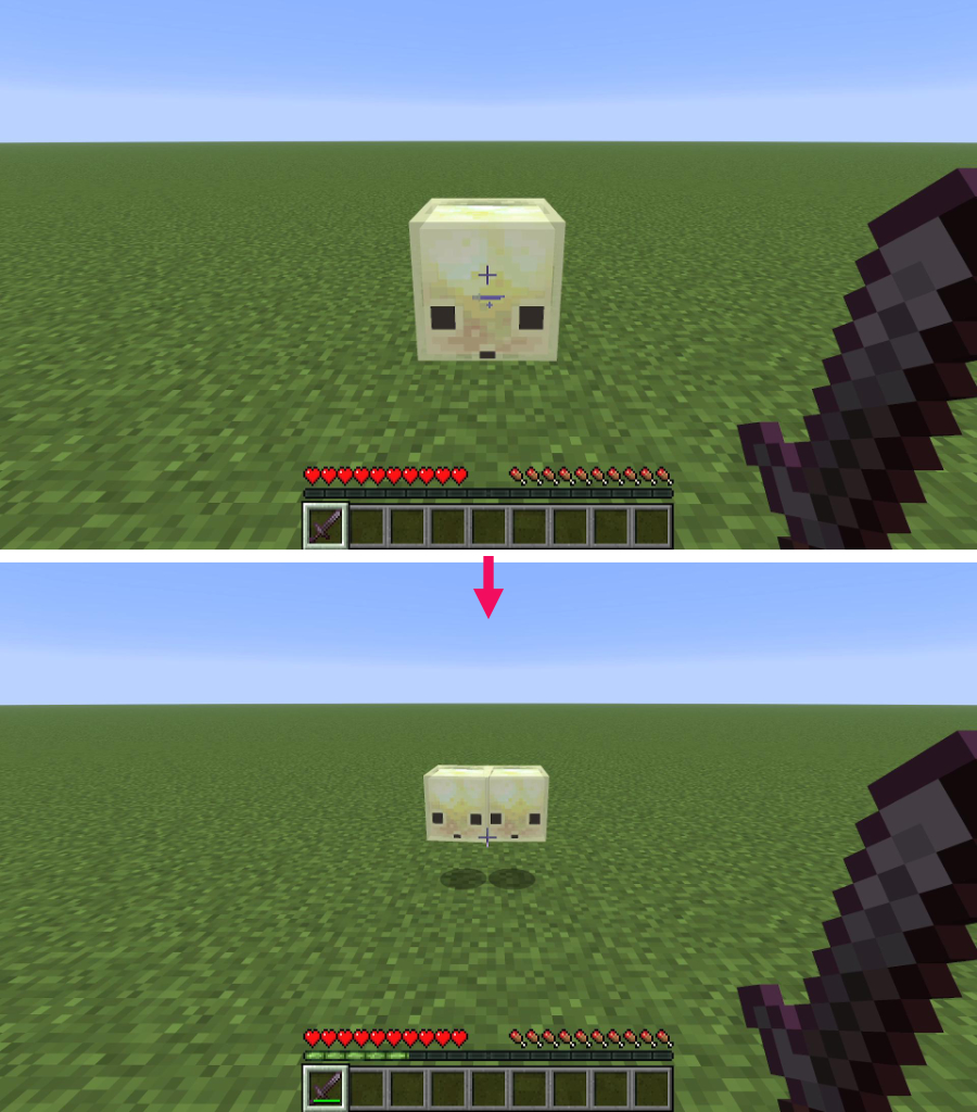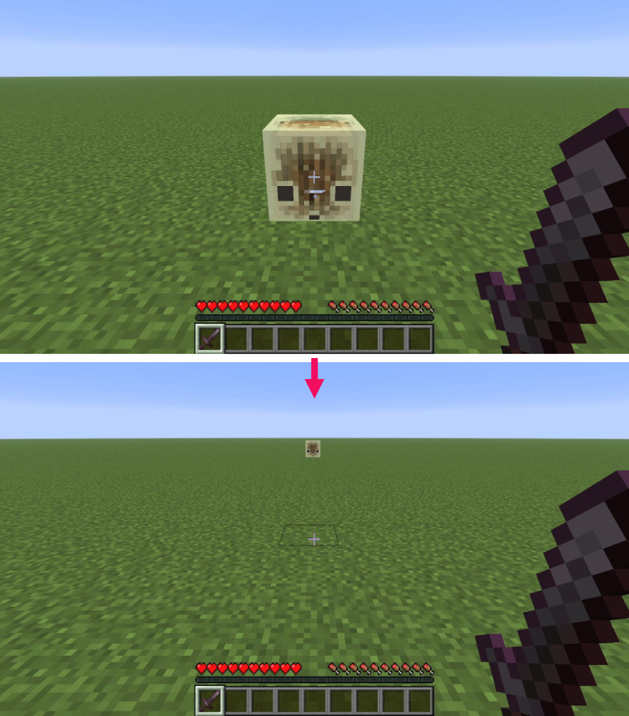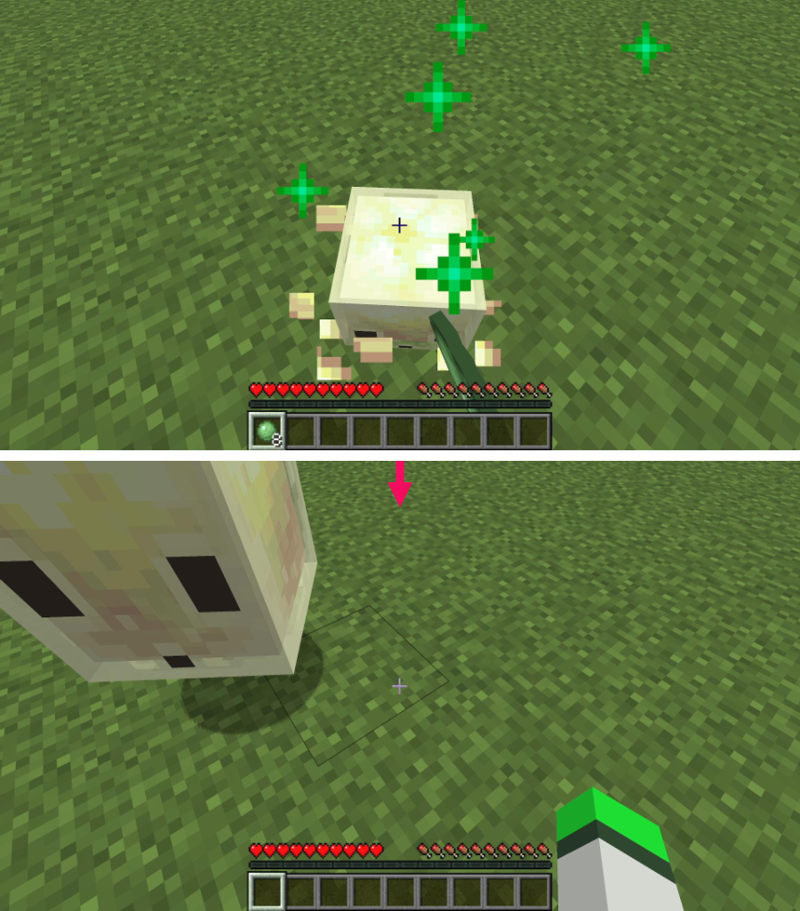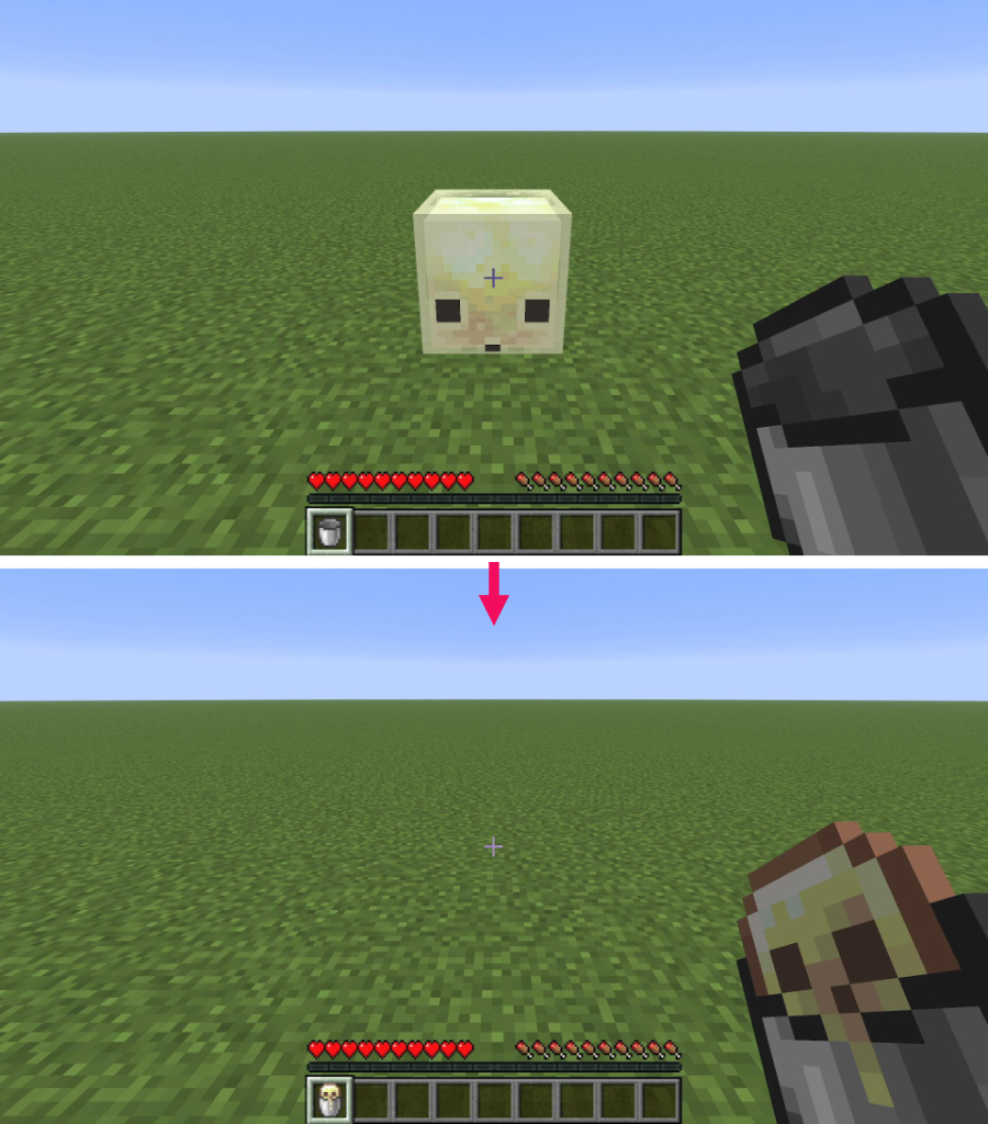 プレイヤーがブロックを持って使用するか近くに落ちているアイテムを見つけると、そのブロックを体内に取り込みます。