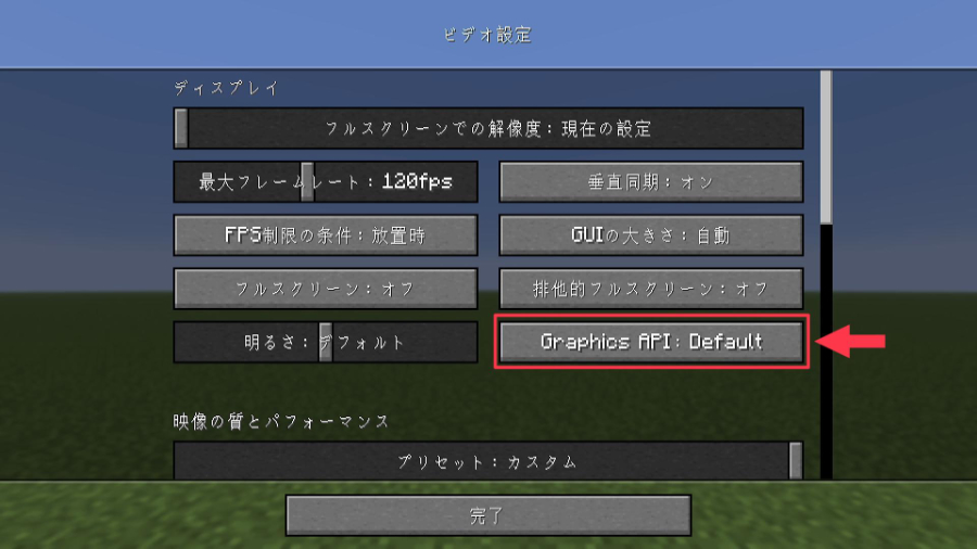 ビデオ設定にグラフィックスAPIの設定が追加され、「OpenGL」と「Vulkan」を切り替えることができます。
