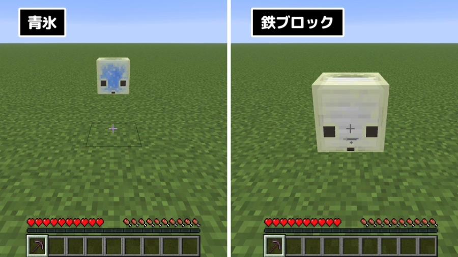 また、取り込んだ原木、氷、鉄ブロックなどブロックの種類によって挙動が変わるという実験的な要素も含まれています。