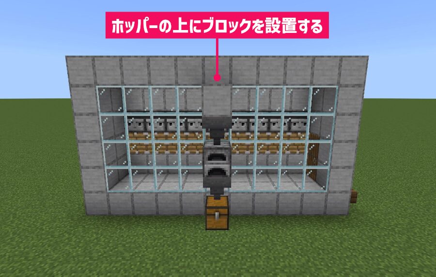 最後にホッパーの上に「ブロック」を置いてください。