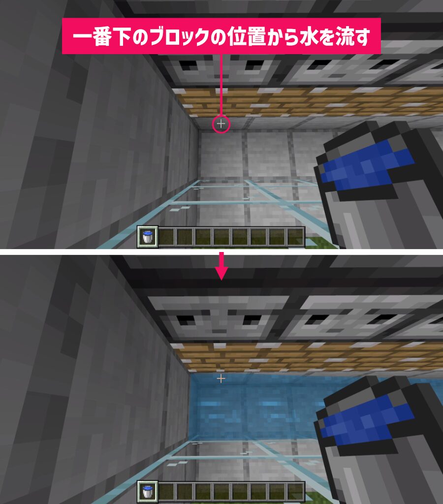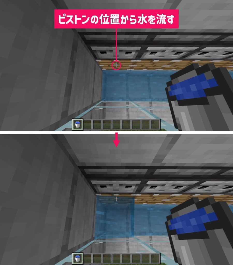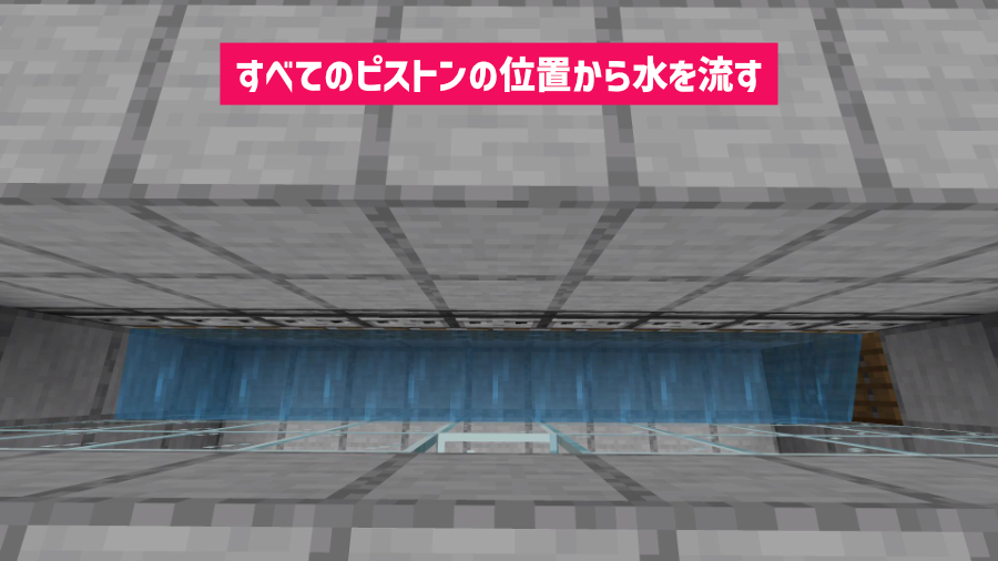 すべてのピストンの下のブロックから水を流して1層目を水源にします。