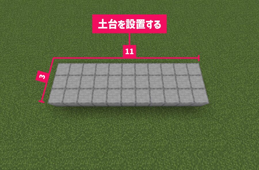 縦3・横11で「ブロック」の土台を設置して