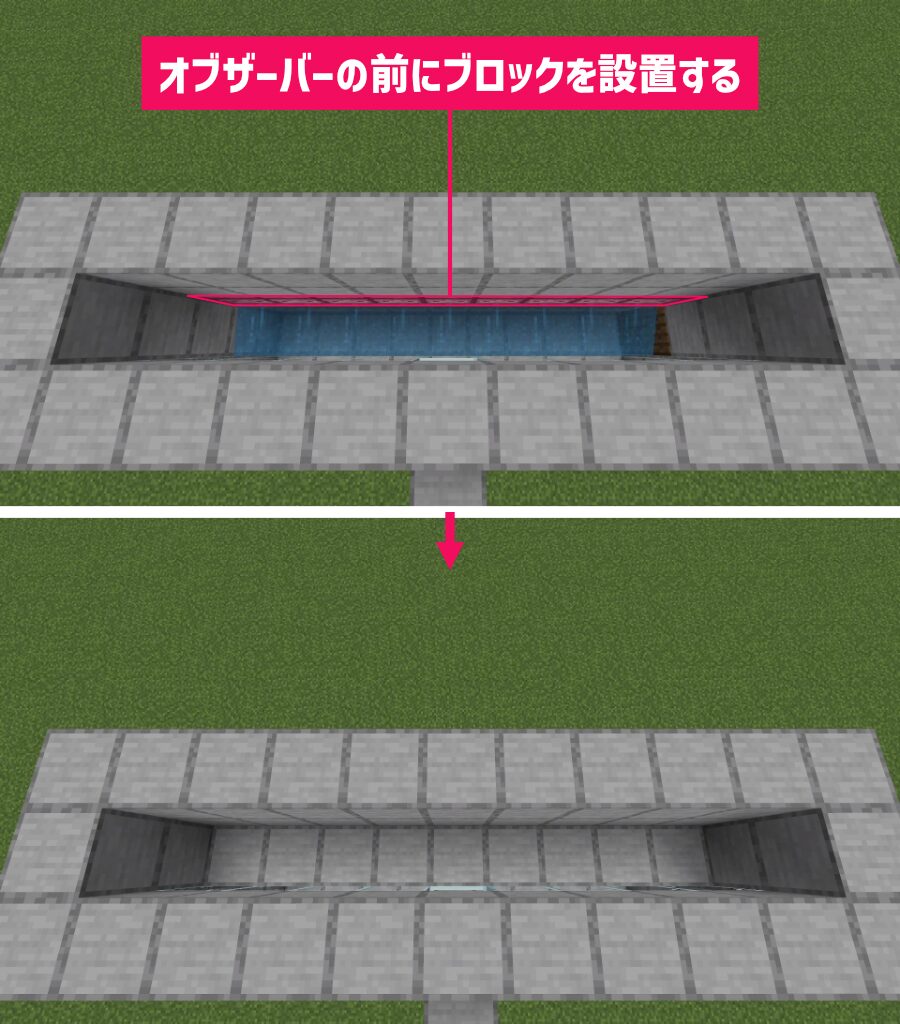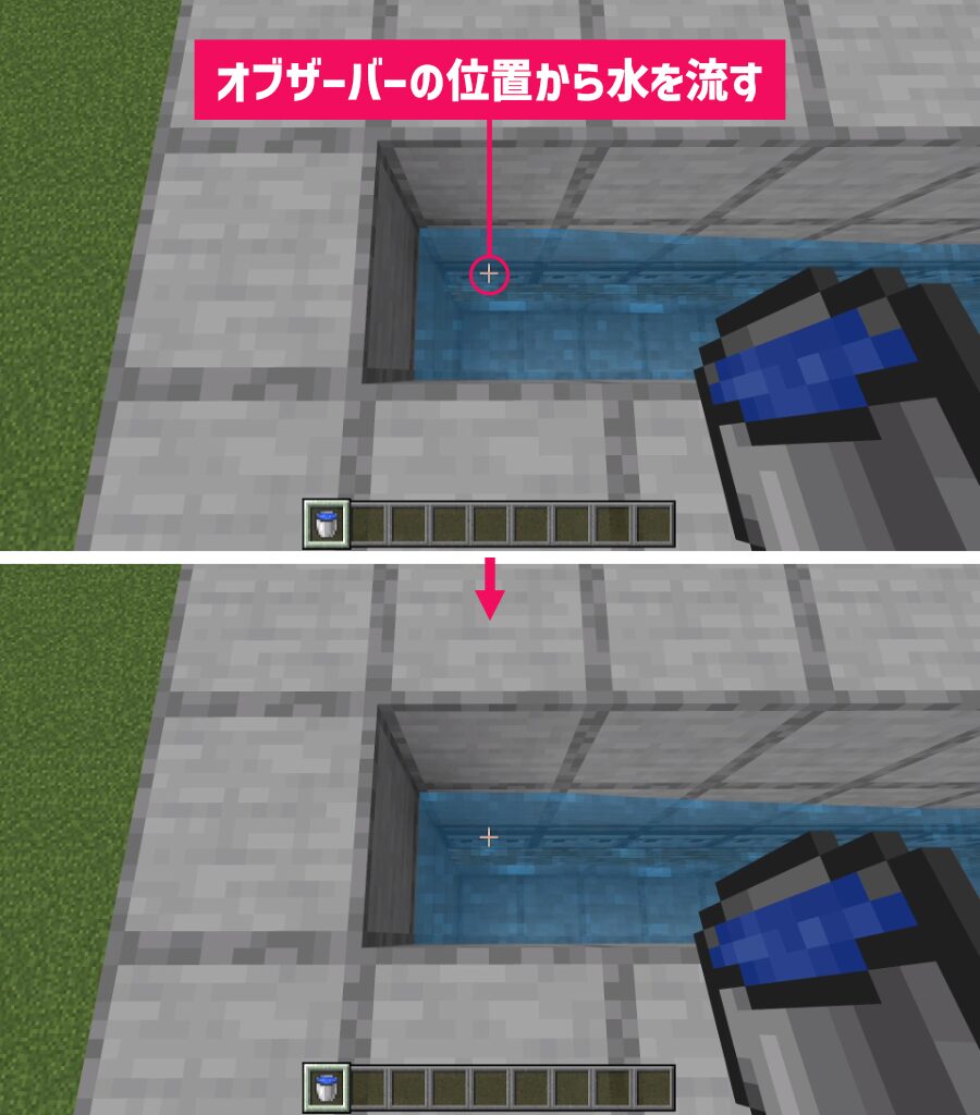 水をすべて流し終わったらホッパーの上のブロックを撤去してください。