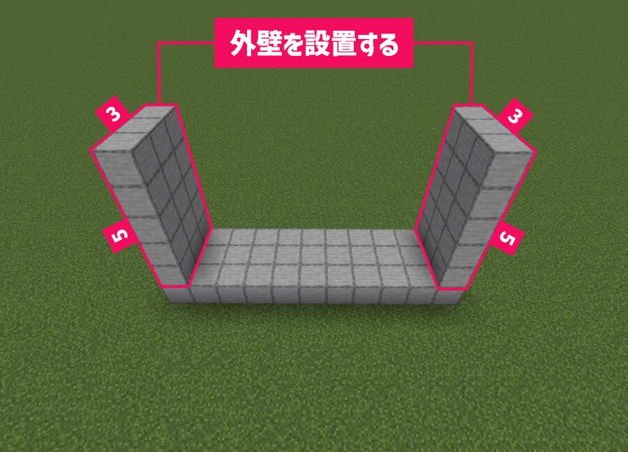 左右に縦5・横3で外壁を設置します。