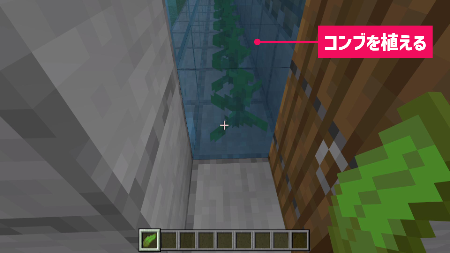 ドアから装置の中に入ってコンブを9個植えます。