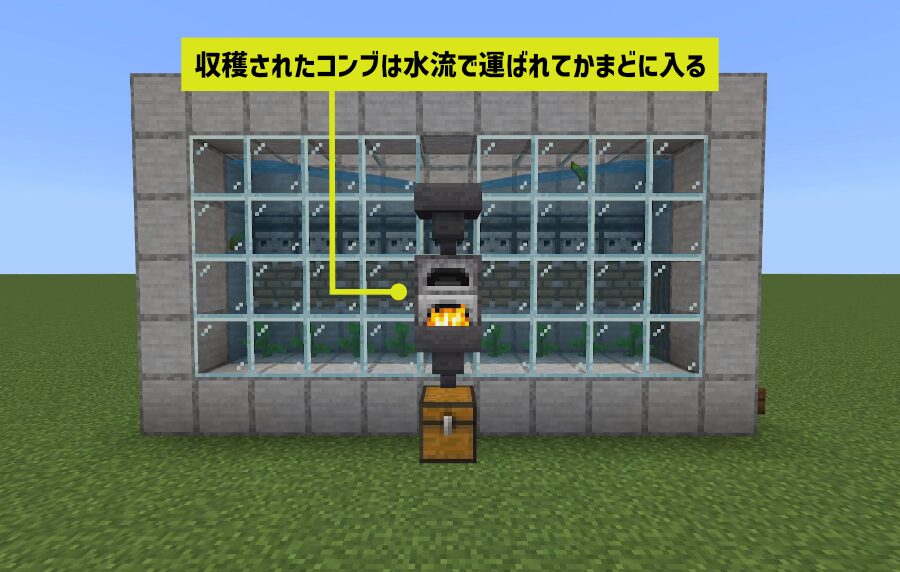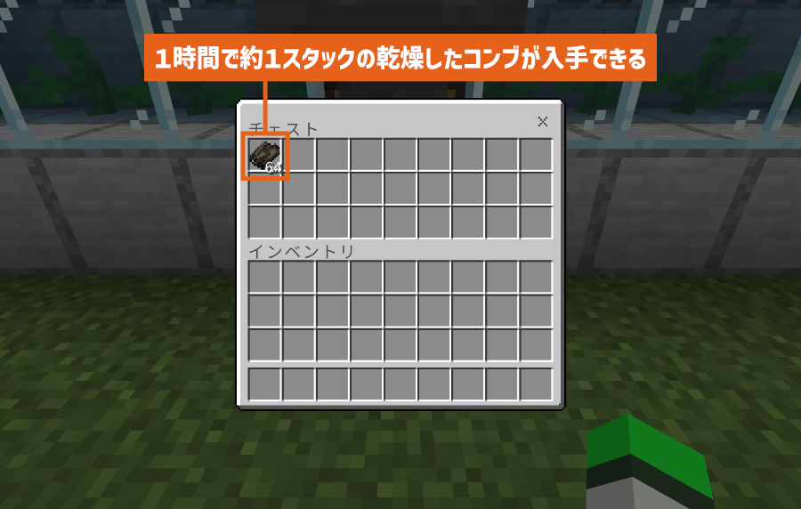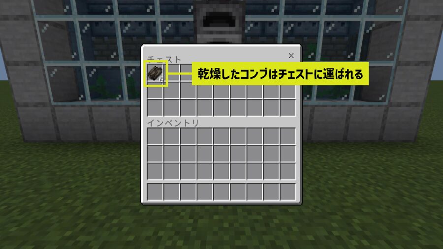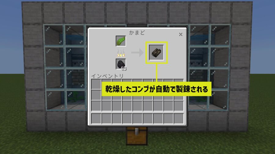 かまどに入ったコンブは自動で「乾燥したコンブ」に製錬されて