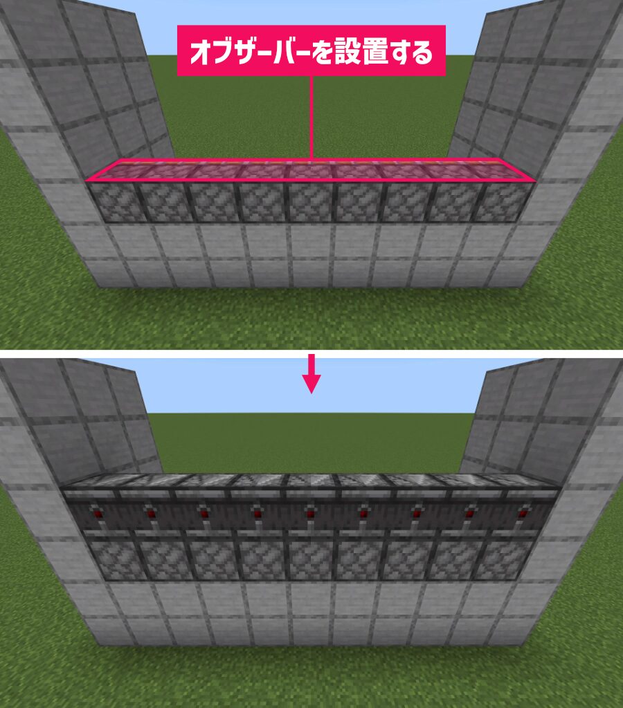 後ろに回ってピストン9個の上に「オブザーバー」を設置して