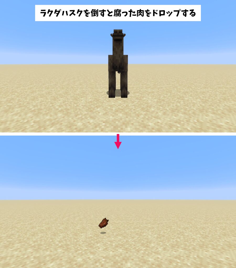 「ラクダハスク」は、倒されると腐った肉2~3個ドロップします。