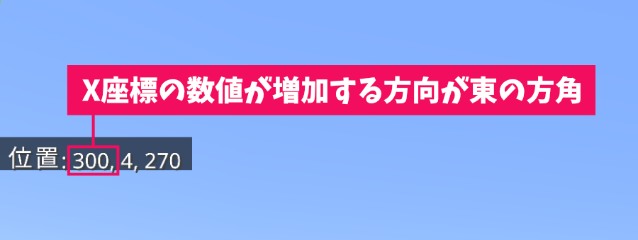 東の方角はX座標の数値が増加する方向と