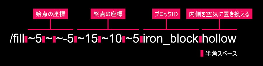 また、座標の表記には「~」(チルダ)を利用した「相対座標」を使用します。