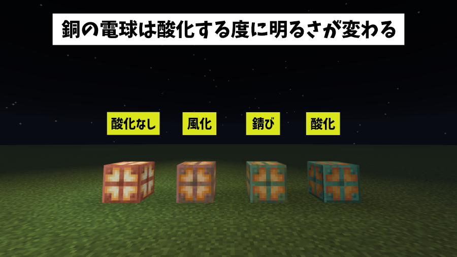 今回は、1.21で新しく追加された「銅の電球」の性質・入手方法と使い方を詳しく解説したいと思います。
