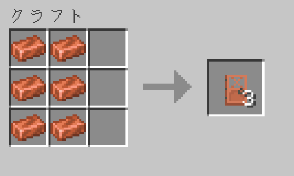 「銅インゴット」6個で銅のドアを3個クラフトできます。