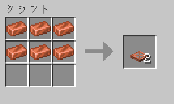 「銅インゴット」6個で銅のトラップドアを2個クラフトできます。