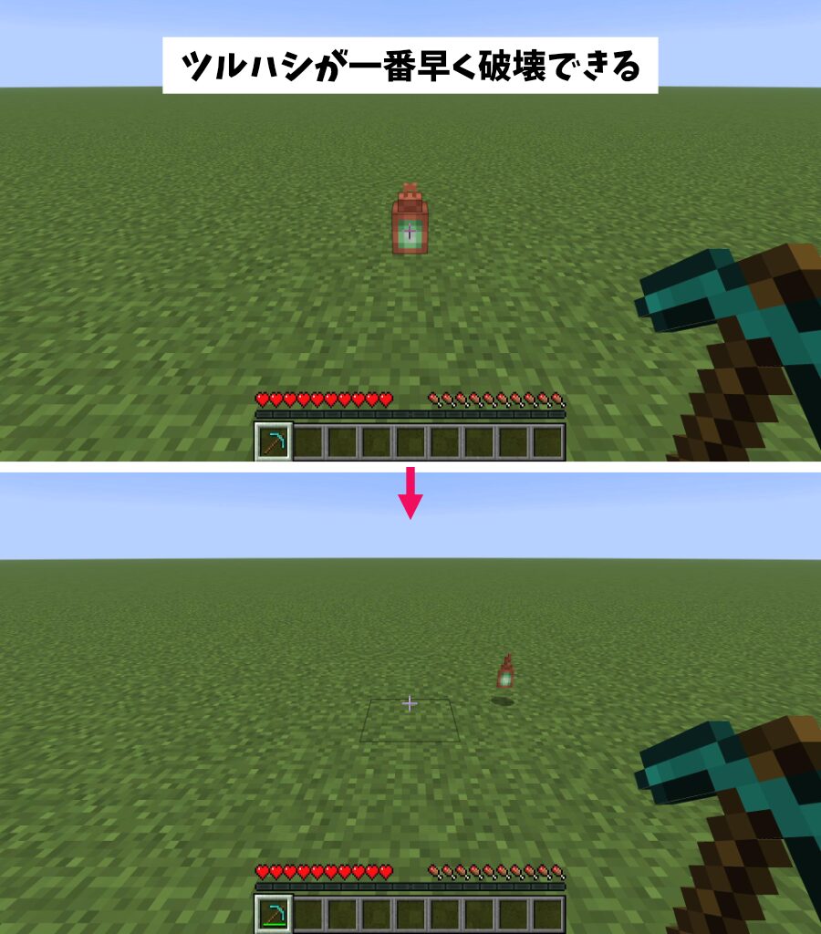 「銅のランタン」は、素手・すべての道具で破壊できますが、ツルハシが一番早く破壊できます。