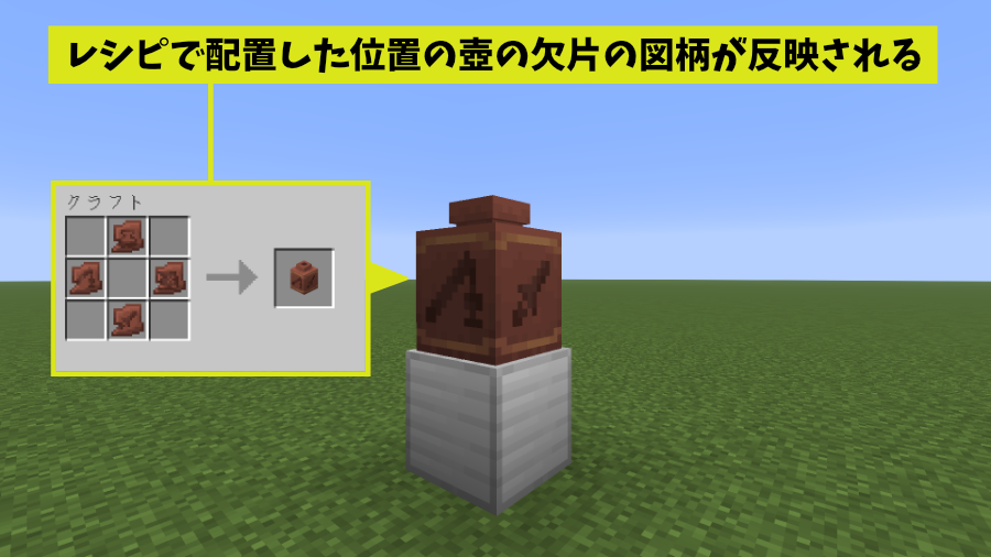 今回は、1.20で新しく追加された「飾り壺」の性質・入手方法と使い道を詳しく解説したいと思います。