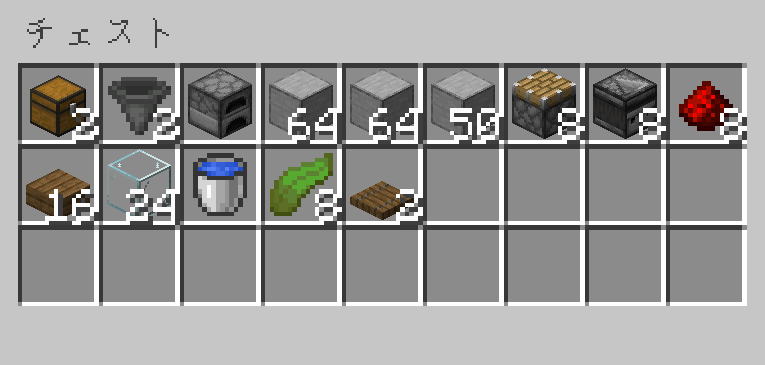 最後にホッパーの列の一番右端に「ブロック」を1個置きます。
