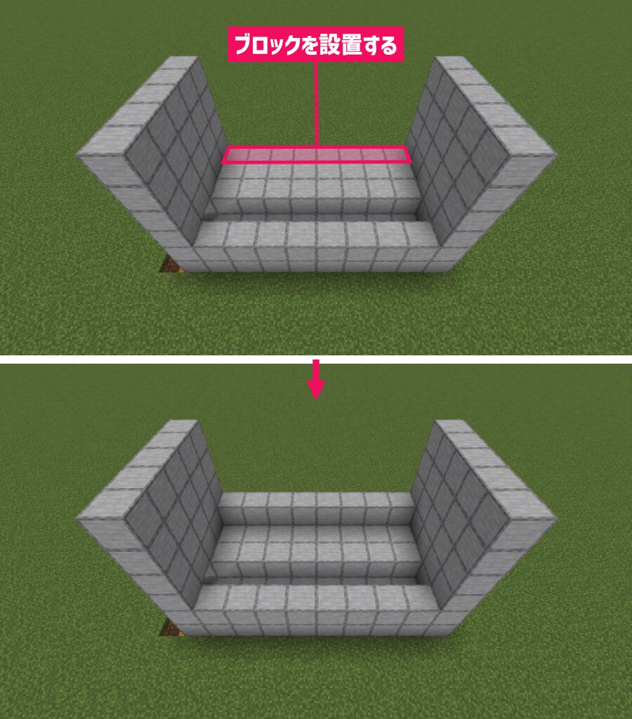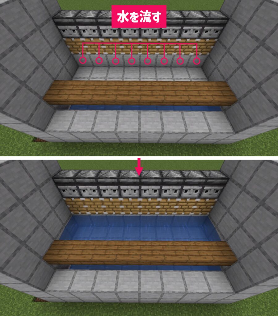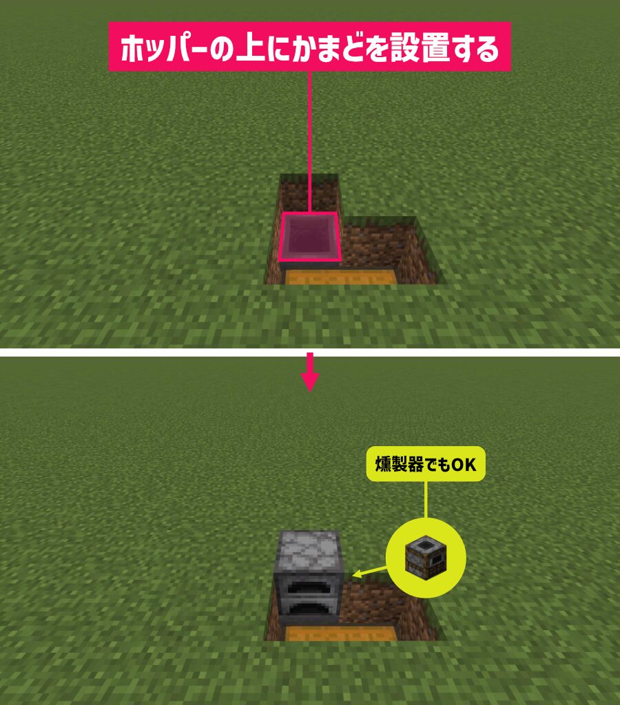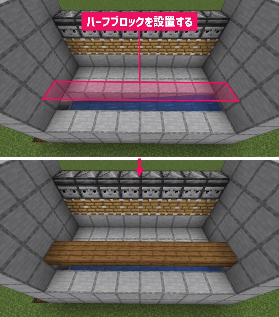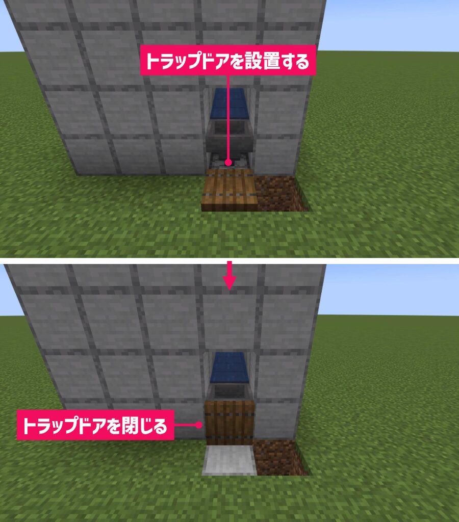 さらに閉じたトラップドアの上に「トラップドア」を設置して同じように閉じてホッパーを隠します。