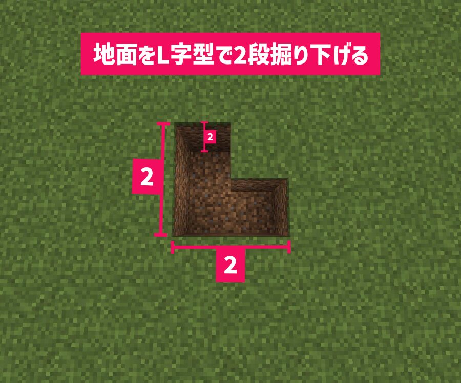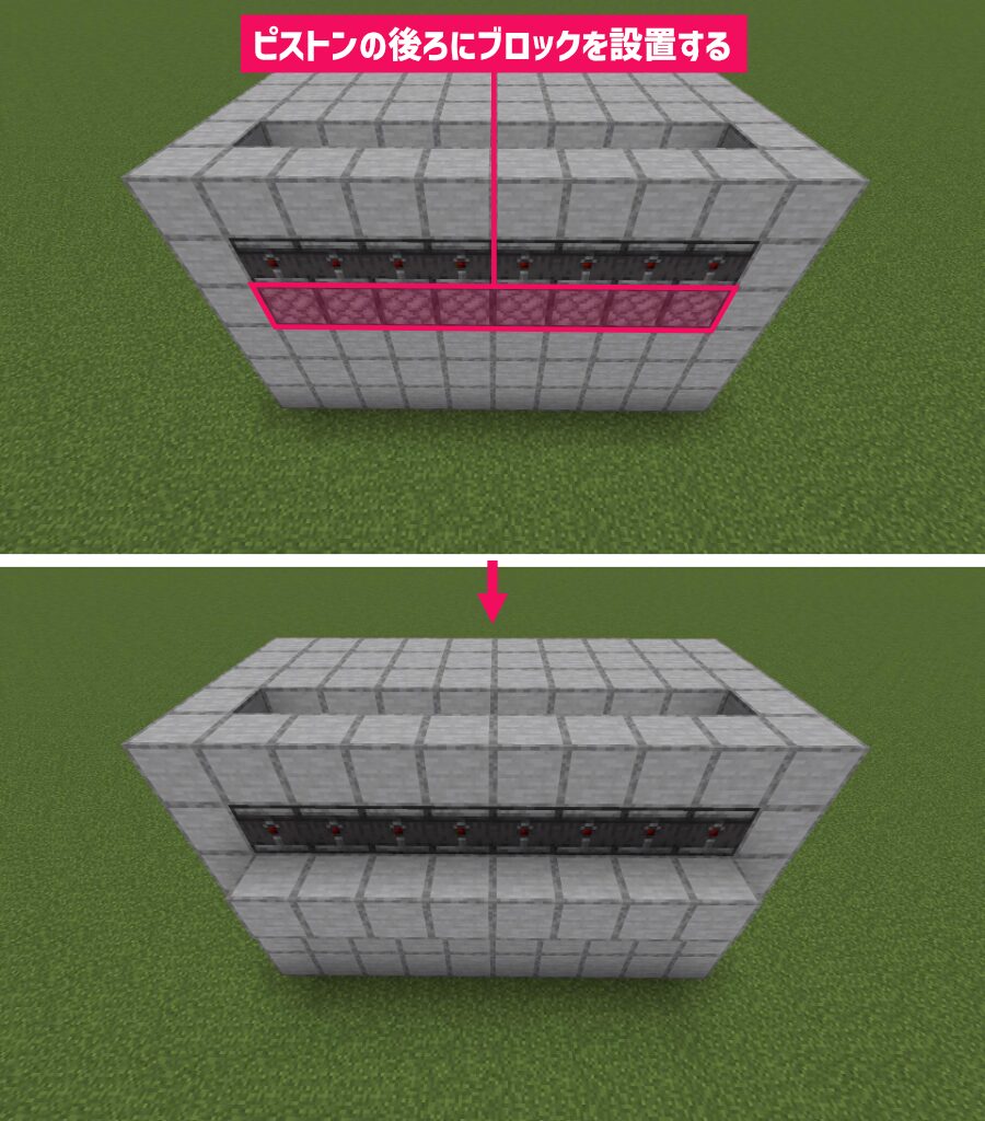 ピストンから1マス空けて「ハーフブロック」を上半分で並べて