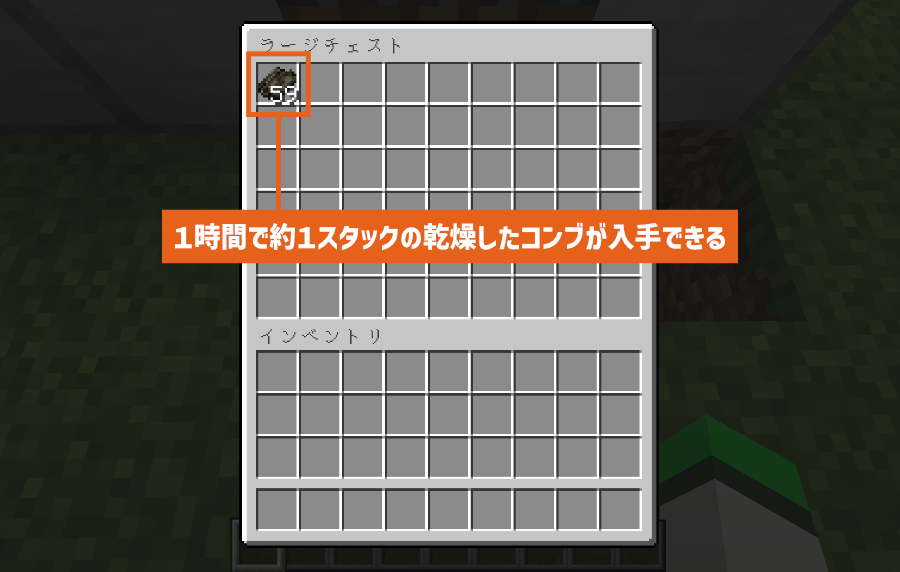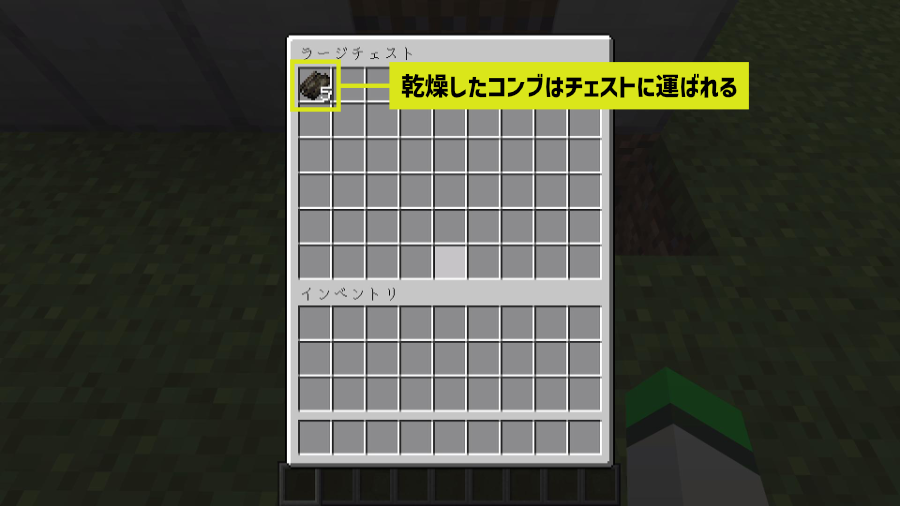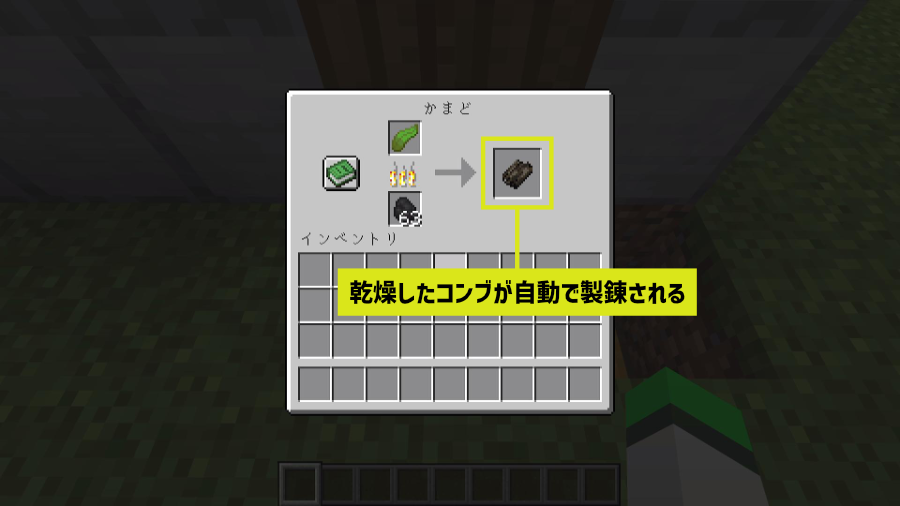かまどに入ったコンブは自動で「乾燥したコンブ」に製錬されて