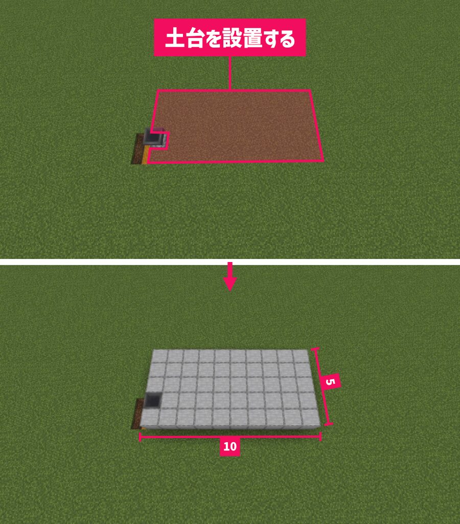 ホッパーが左端の下から2列目になるように縦5・横10で「土台」を設置して