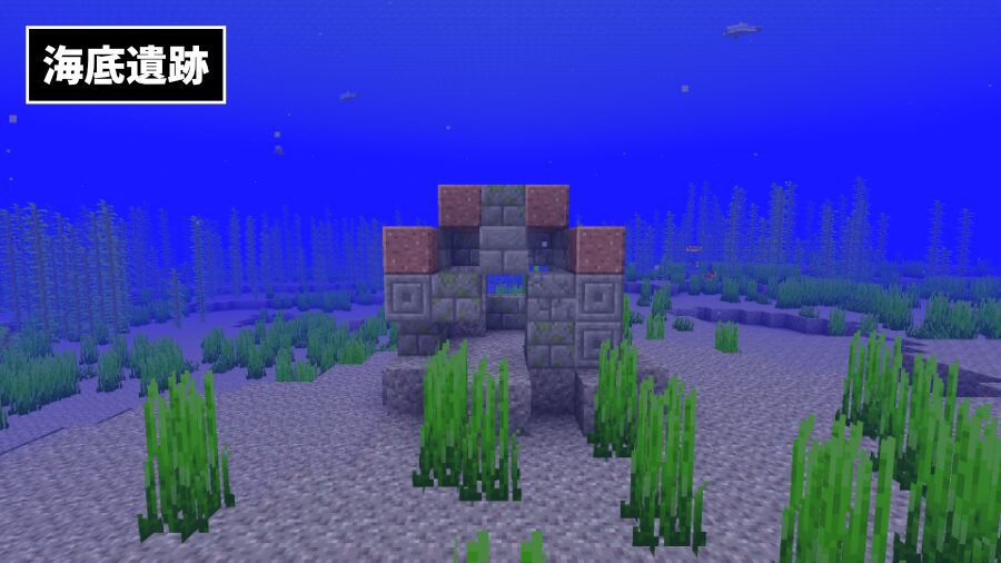 | 海底遺跡(冷たい海域) | 壺の欠片・エメラルド・金塊・鉄の斧・木のクワ 小麦・石炭 |